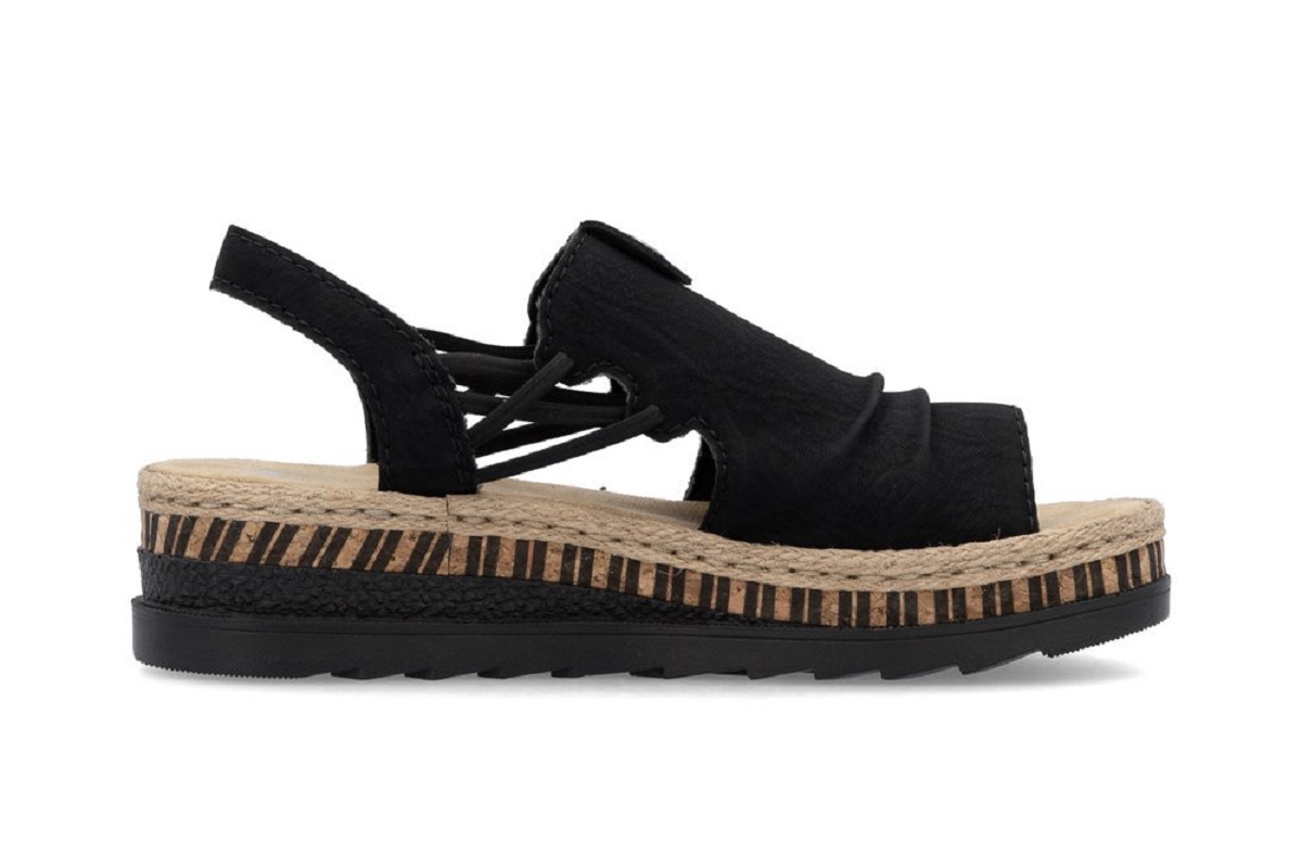 Rayon : FemmeCatégorie : Sandales nu PiedsHauteur du talon : -2 cmSemelle extérieure : caoutchoucFabrication : AllemandeFermeture : élastique d'aisanceCouleur : NoirRéférence : 5982501